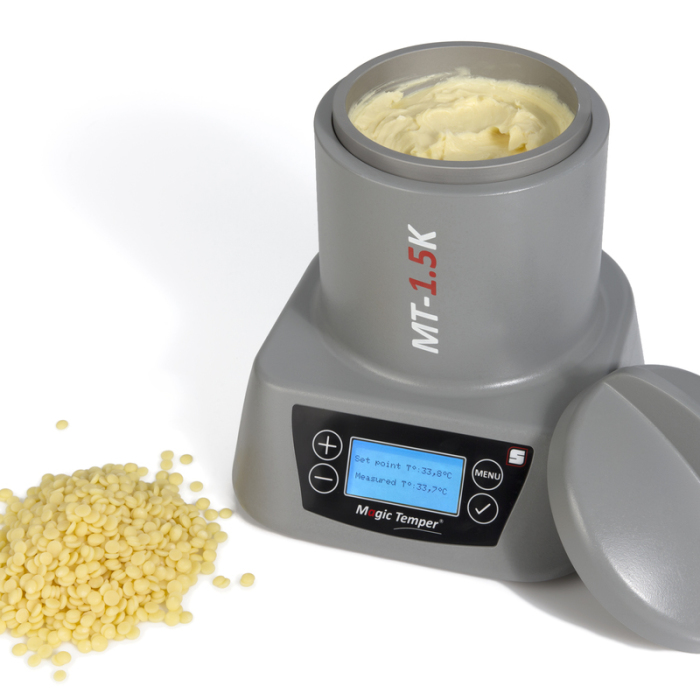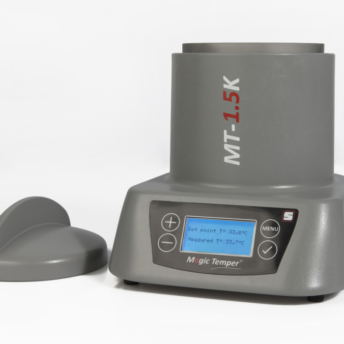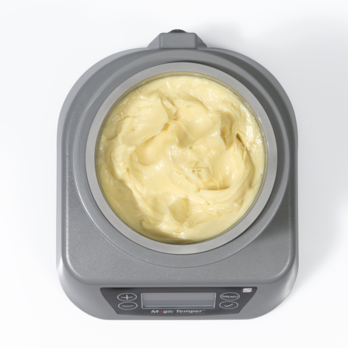 Un outil compact, fiable et facile à utiliser, pensé pour le tempérage des couvertures, ganaches, pralinés et intérieurs. Il permet une amélioration significative de la qualité des produits finis : meilleure brillance, textures optimales, casse nette et démoulage rapide, tout en réduisant fortement le risque de blanchiment gras.