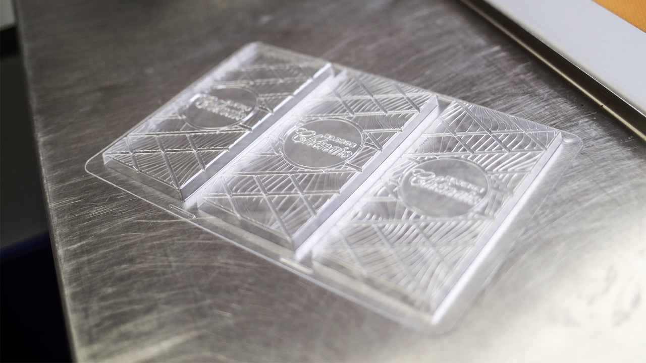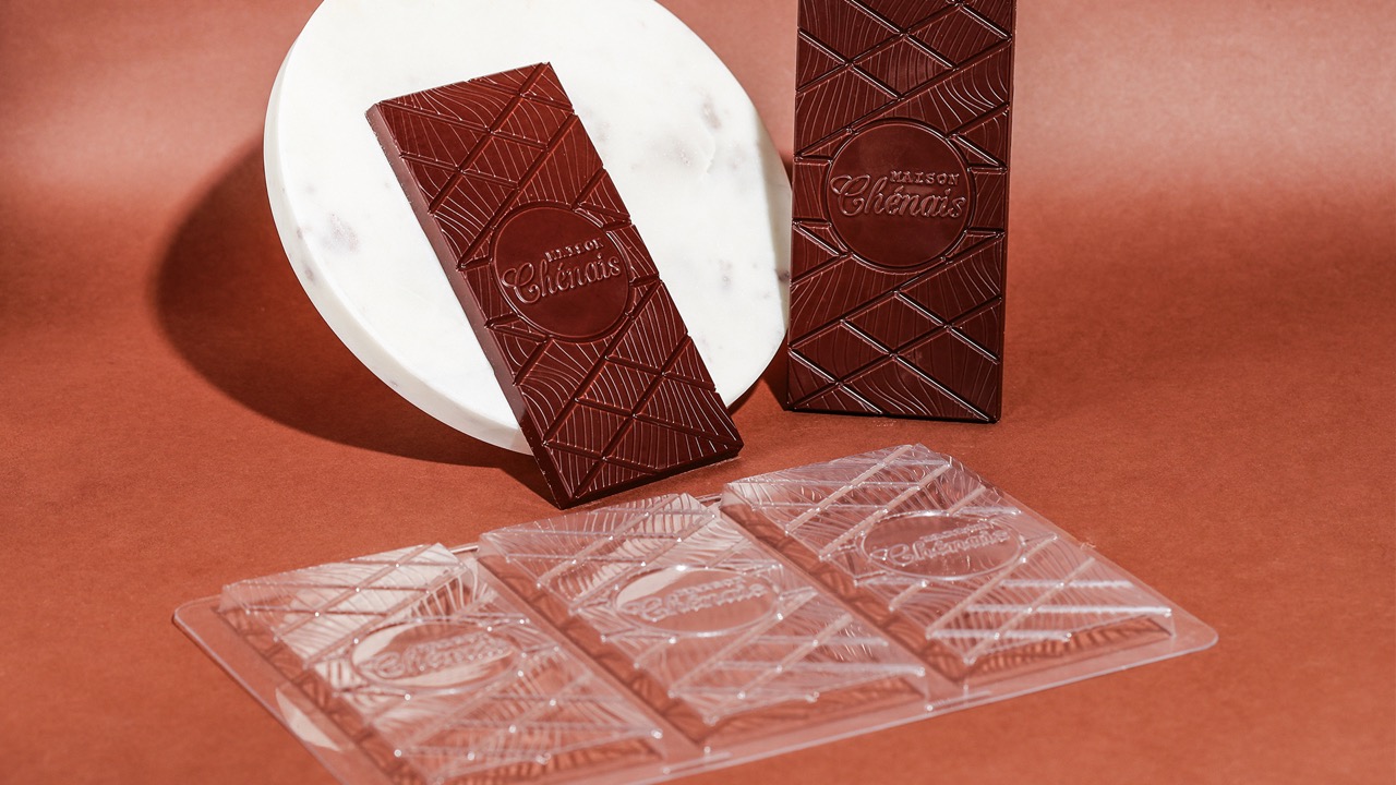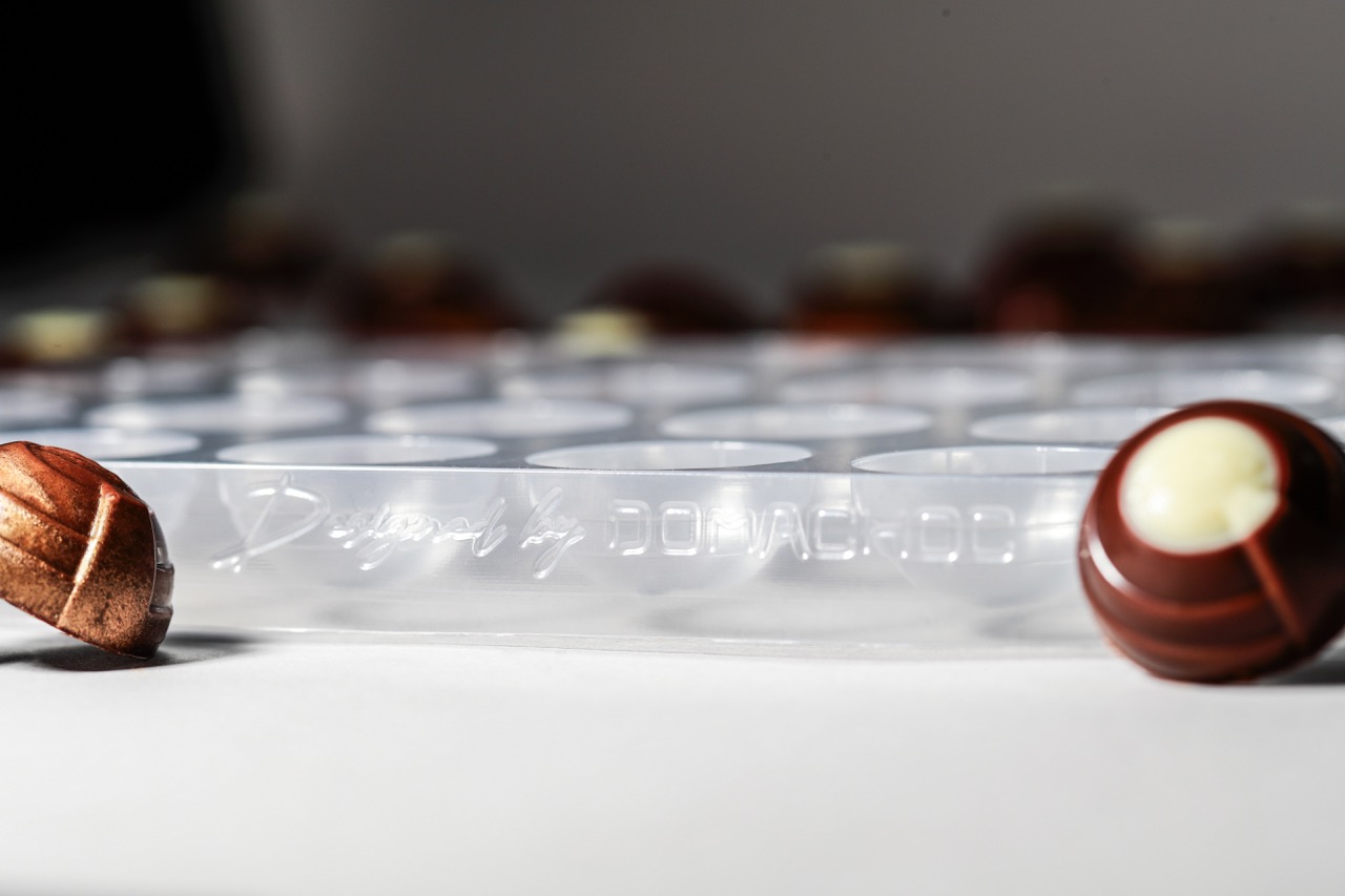 Domachoc conçoit et fabrique des moules thermoformés personnalisés pour les chocolatiers professionnels. Réalisés dans nos ateliers en France, nos moules sont développés entièrement sur mesure selon vos besoins et vos envies, ou à partir de matrices déjà existantes. Notre expertise en thermoformage garantit une qualité de finition irréprochable, une restitution précise des formes et une grande durabilité. Chaque moule est pensé pour répondre aux exigences techniques et créatives des artisans souhaitant offrir à leurs chocolats une signature unique et professionnelle.
