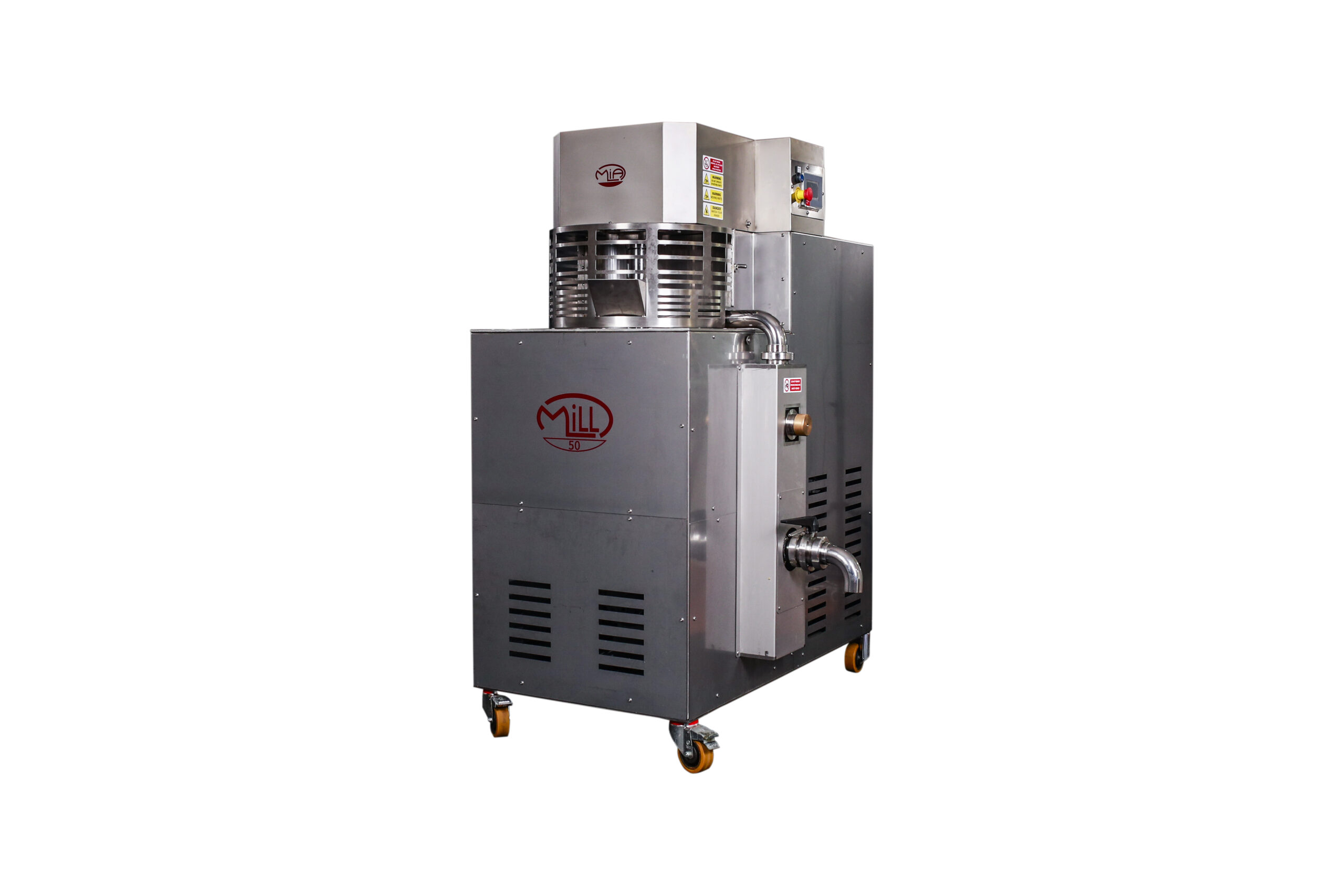 Le raffineur MILL-100 est le modèle d’entrée de gamme idéal pour la production artisanale ou semi-industrielle de crèmes et pâtes à tartiner à base de fruits secs. Il permet de traiter des lots de 75 à 120 kg avec une finesse de mouture comprise entre 22 et 25 microns, assurant une texture lisse et homogène, parfaitement adaptée aux amandes, noisettes, pistaches, noix, cacahuètes ou encore noix de cajou.