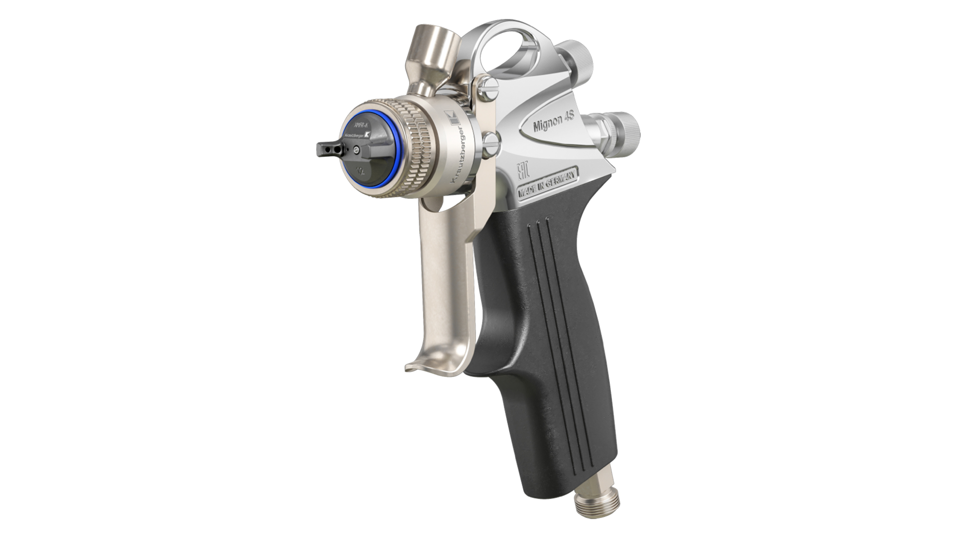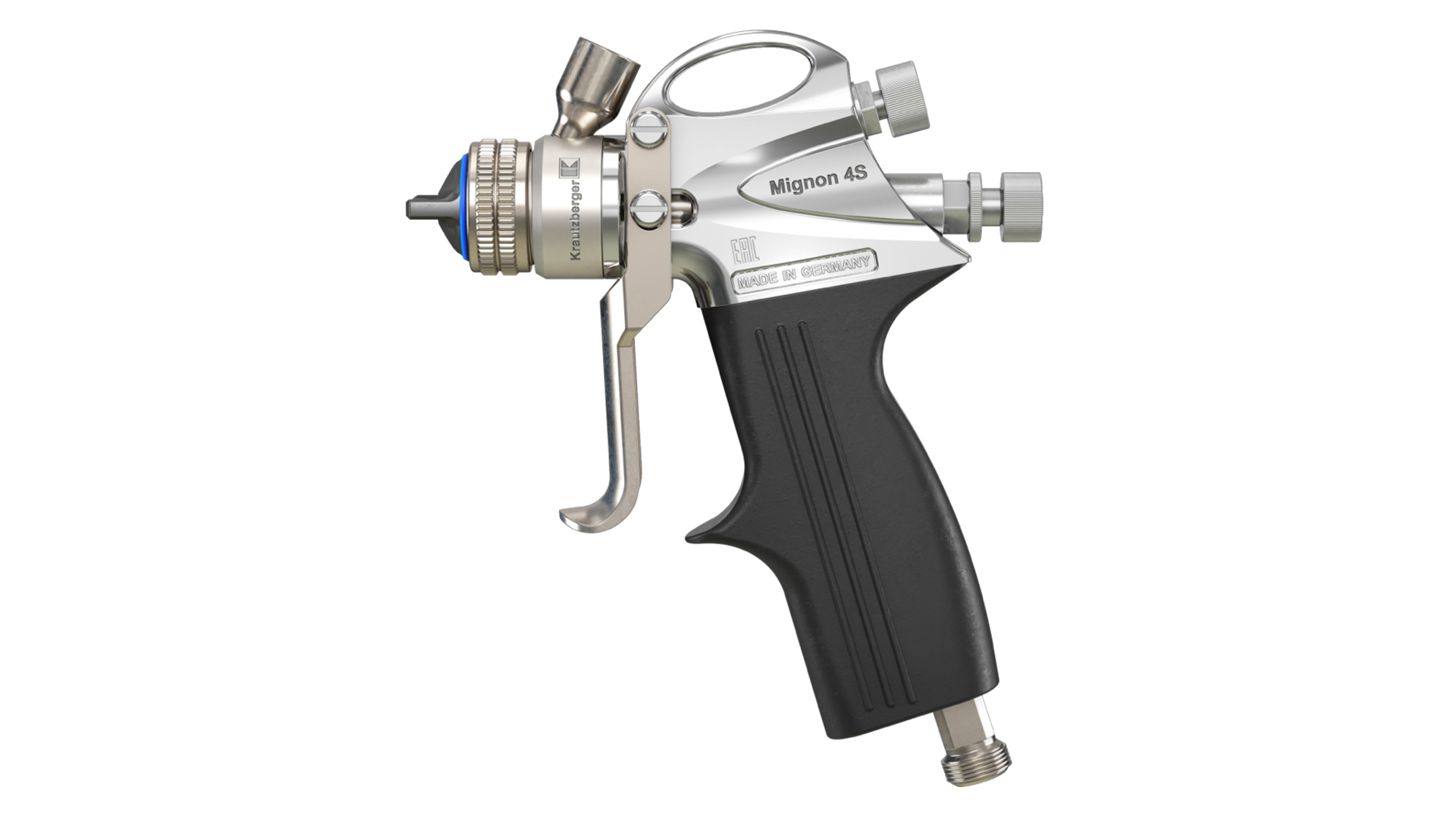 Le Mignon 4 dispose du nouveau système de buse XLINE. Sa forme ergonomique et compacte, son faible poids et le grand choix de buses font du Mignon 4 un pistolet manuel universel. Le Mignon4 S est alimenté en matériau par une coupelle d’écoulement. La régulation de la quantité de produit par le réglage de la course de l’aiguille avec contre-écrou permet un dosage fin et progressif.
