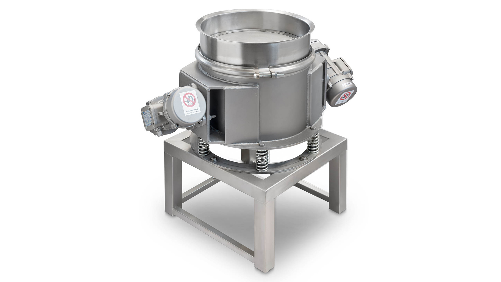 Tamis vibrant pour pâtes de 40 cm de diamètre offrant une solution robuste et fiable pour le tamisage continu des pâtes de fruits secs, en éliminant les particules de peau et les résidus dont la granulométrie dépasse les standards de finesse attendus.