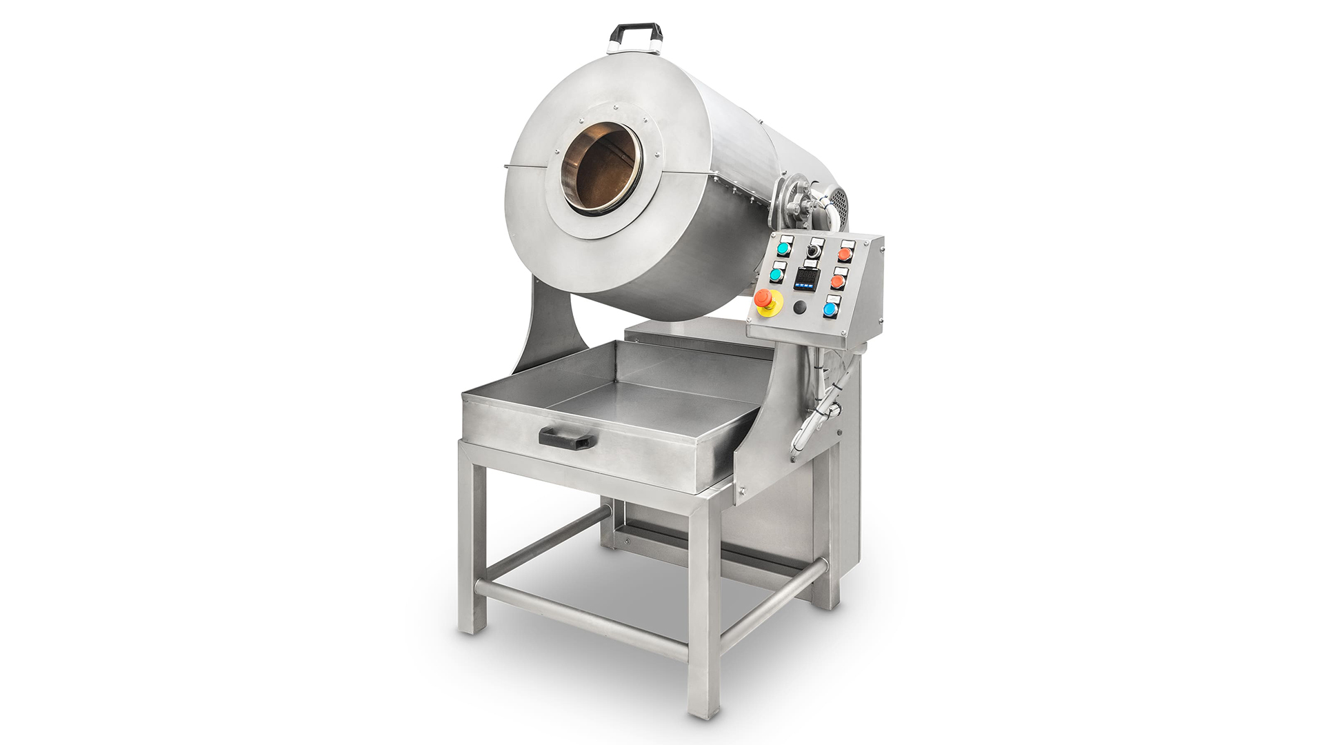 La pralinière P5RE est une machine semi-automatique conçue pour l'enrobage au sucre caramélisé de fruits secs, qu'ils soient entiers ou concassés. Sa structure est entièrement réalisée en acier inoxydable AISI 304, garantissant durabilité et facilité d’entretien. Les turbines, quant à elles, sont fabriquées en cuivre traité spécialement pour un usage alimentaire, assurant une qualité optimale lors du traitement des produits.